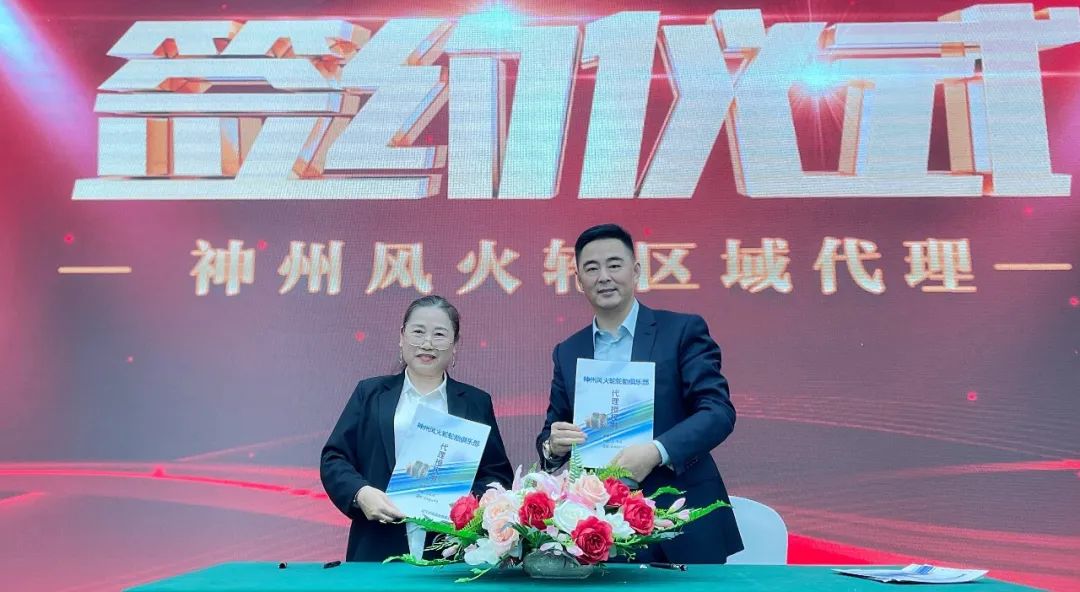 神州風(fēng)火輪為全國意向代理商提供了一次財富機(jī)遇,同時也進(jìn)一步布局全國市場。遼寧神州風(fēng)火輪輪胎科技有限公司教育顧問朱垣燐先生代表公司與意向代理商進(jìn)行簽約儀式,本次會議共有11位高瞻遠(yuǎn)矚的意向代理商完成簽約,成功鎖定12城。通過這次會議意向代理商們對神州風(fēng)火輪有了更深入的了解,對產(chǎn)品更加放心,希望后期能夠合作共贏。